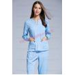 - Thiết kế kiểu cổ tròn khoét chữ V, may viền cùng màu ấn tượng. Kiểu dáng tay lỡ, thuận tiện khi thao tác chuyên môn.