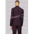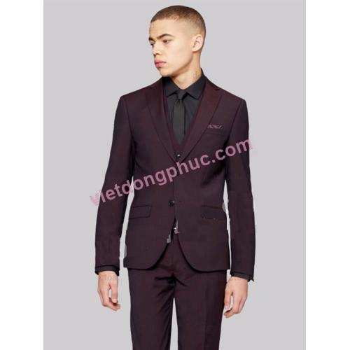 - Mẫu đồng phục áo vest nam mà chúng tôi giới thiệu dưới đây được thiết kế ve áo hình chữ V, vạt nhọn, có một nút khuyết ở đỉnh ve áo tạo nên dáng vẻ nam tính của chàng trai công sở. Phần cổ được may thật đứng và tạo góc sắc nét, không nhăn nhúm, oằn và che mất cổ áo sơ-mi. Điểm nhấn trên áo là phần túi có nắp với mép vải được phối cùng là gam màu tím nhưng có độ đậm nhạt khác nhau, được may khéo léo và hài hòa.