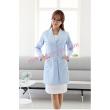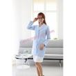 - Áo được may kiểu cổ bẻ chữ K, tay dài, form dáng suông cùng chiều dài chạm trên gối, đường xẻ tà sau giúp người mặc thoải mái vận động cả ngày và cho cơ thể thêm gọn gàng hơn.