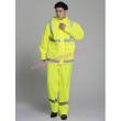 - Sử dụng chất liệu polime, chống thấm nước có phản quang nhằm để nhận biết được vị trí người ở khoảng cách nhất định. Loại áo mưa này sử dụng thích hợp cho người thường lao động trong điều kiện thiếu ánh sáng, ánh sáng không ổn định vì trời mưa… hay những cảnh sát giao thông đang làm điều khiển giao thông ban đêm những lúc trời mưa.