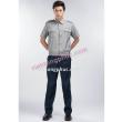 - Mẫu đồng phục bảo vệ sự dụng gam màu ghi xám, áo kiểu cổ đứng. Thân trước ngực may hai túi ốp ngoài, bị túi may đố. Tay ngắn cửa tay may lật ra ngoài, trên cánh tay trái may dán ký hiệu bảo vệ cơ quan hoặc doanh nghiệp. Gấu áo bằng.