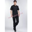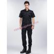 - Áo kiểu cổ đứng. Thân trước ngực may hai túi ốp ngoài, bị túi may đố, nắp túi vát nhọn, may bật vai đeo cấp hiệu. Thân sau cầu vai rời xếp hai ly. Tay ngắn cửa tay may lật ra ngoài, trên cánh tay trái may dán ký hiệu bảo vệ cơ quan hoặc doanh nghiệp. Gấu áo bằng.