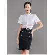 - Điểm nhấn ấn tượng của mẫu chân váy đẹp này là hai hàng khuy cúc song song và đường chiết ly chạy dọc thân váy giúp tăng hiệu ứng chiều cao cho nàng, giúp nàng trở nên thanh mảnh và thon gọn hơn.
