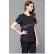 - Cổ áo chữ V kín đáo nhưng vẫn kiểu cách điệu đà, kết hợp với chi tiết khuy bấm và khóa dính mặt trong nẹp áo vừa thuận tiện khi mặc, vừa dễ sử dụng.