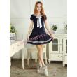 - Mẫu dong phuc hoc sinh cap ba dành cho nữ có thiết kế điệu đà với hai đường kẻ sọc dọc theo đường viền cổ áo khiến nhiều người liên tưởng đến đồng phục thủy thủ, phong cách quân đội.