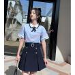 - Chân váy xếp li dáng A, độ dài ngang gối, tôn lên sự thanh lịch, nữ tính nhưng không mất đi sự trẻ trung và thời trang.