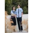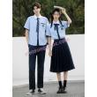 - Áo học sinh được may dáng suông vừa phải, dạng cổ bẻ cổ điển, tay ngắn thoáng mát, phần cổ, gấu tay áo và miệng túi áo được phối màu nổi, mang đến sự thoải mái, thanh lịch.