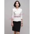 - Phía dưới là chân váy dáng bút chì đơn giản nhưng thanh lịch, đây là mẫu chân váy đang rất được lòng phái đẹp. Thiết kế chân váy dáng ngắn giúp nàng tha hồ tôn lên vóc dáng cân đối cũng như đôi chân dài gợi cảm.