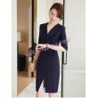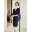 - Váy liền được may cổ vest cách điệu, form dáng ôm vừa phải, phần đai eo gọn gàng, giúp cân đối hình thể, mang đến tổng thể vẻ ngoài gợi cảm mà vẫn cá tính, năng động.