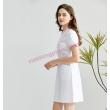 - Sự nhẹ nhàng, trang nhã toát lên từ thiết kế và sự phối hợp màu sắc tại cổ, miệng túi áo, nẹp hai bên hông, đã khiến mẫu váy liền y tá này ghi điểm trong mắt các nữ nhân viên.